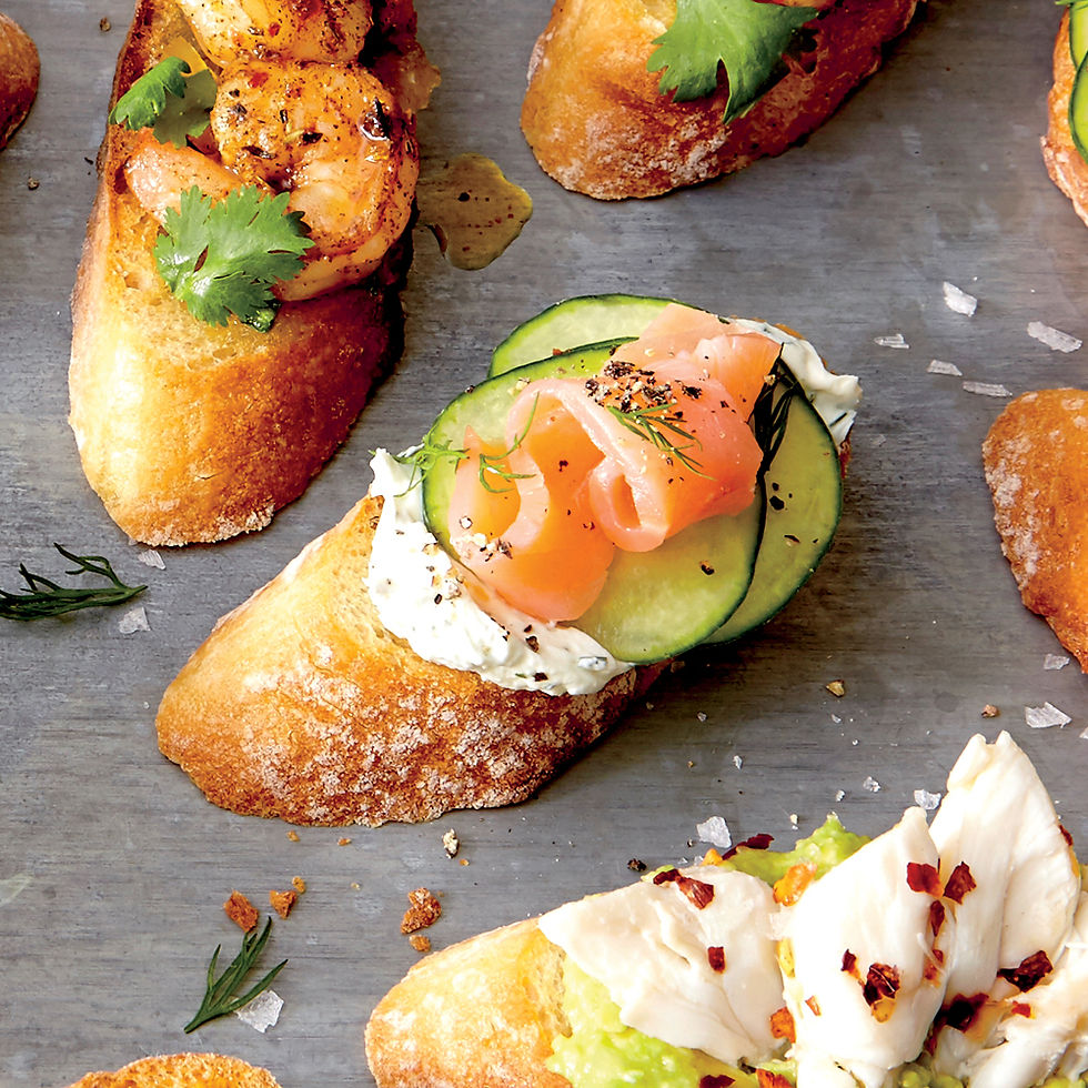 Crostini with Jerk Shrimp and Pineapple Chutney
